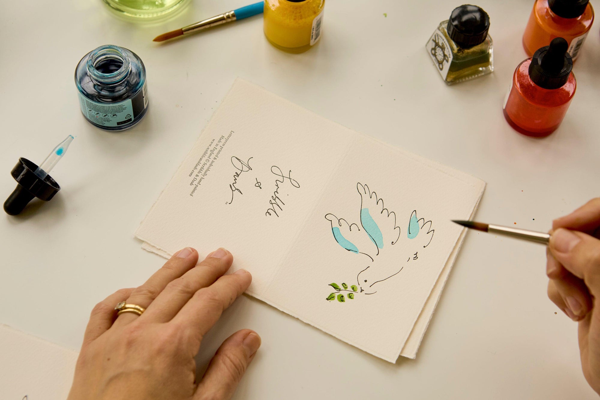 What makes Scribble & Daub paper products so distinctive and sought after? Every single one is created from original dip pen and ink illustrations by founder Caroline Kent, which are then letterpress printed at our traditional local workshop, and individually hand-painted, one by one, in our East Sussex studio, giving unparalleled vibrancy of colour and a completely unique piece.