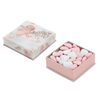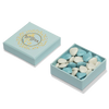 An assortment of heart-shaped chocolate dragées in either blue or pink and white, presented inside a cherub jewel box.