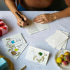 All Scribble & Daub cards are traditionally letterpress-printed from original dip pen and ink drawings and then individually hand-painted with Andy Warhol's favourite inks on luxurious Italian deckle-edged cards with matching envelopes.