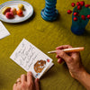 Original dip pen and ink scribbles by founder Caroline Kent are letterpress printed at our traditional workshop and then individually hand-coloured with daubs of vivid inks just for you in our Sussex studio.
